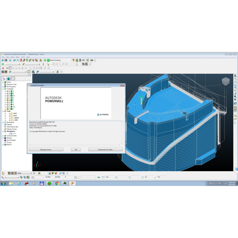 Delcam PowerMILL – это независимая CAM-система для подготовки высокоэффективных управляющих программ для фрезерных станков с ЧПУ, которая позволяет быстро создавать траектории УП без зарезов по матмоделям, используя 2.5D обработку, 3-осевую обработку или многоосевую одновременную обработку. Затем эти траектории могут быть проверены на наличие столкновений с другими моделями (например, зажимами) и патроном перед выводом траектории tap-файлы.