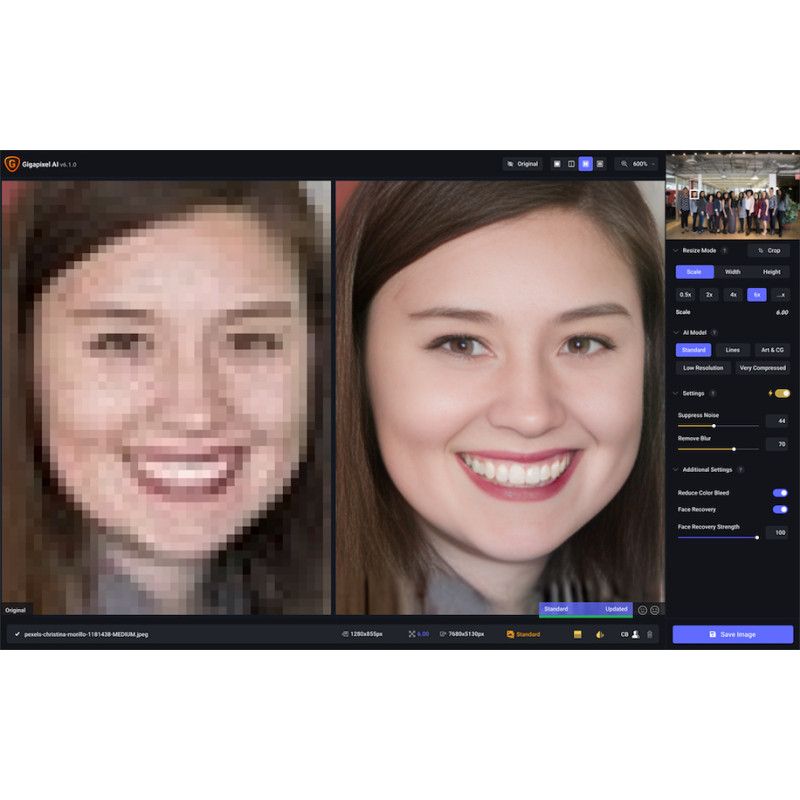 Topaz Video AI – это совершенное новое решение для увеличения видео с использованием искусственного интеллекта. Topaz Video AI, обученный работе с тысячами видео и совмещающий в себе информацию из нескольких входных видеокадров, увеличит ваше видео до разрешения 8K с точными деталями и последовательностью движения. Video AI превратит ваши видео в чистые увеличенные кадры с разрешением до 8K, от старых домашних фильмов до низкокачественных SD и DVD.