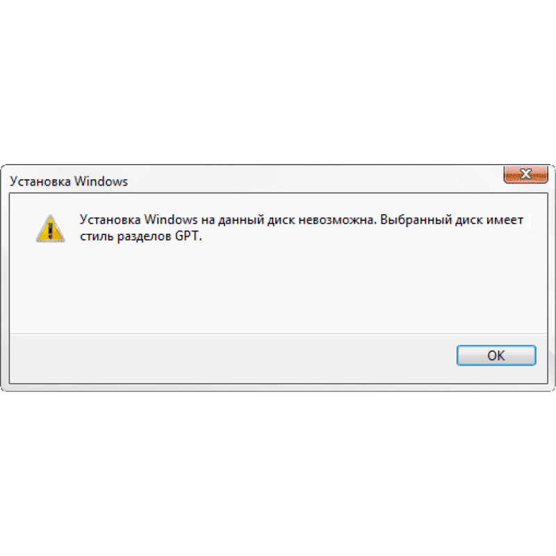 Выбранный диск имеет стиль разделов GPT