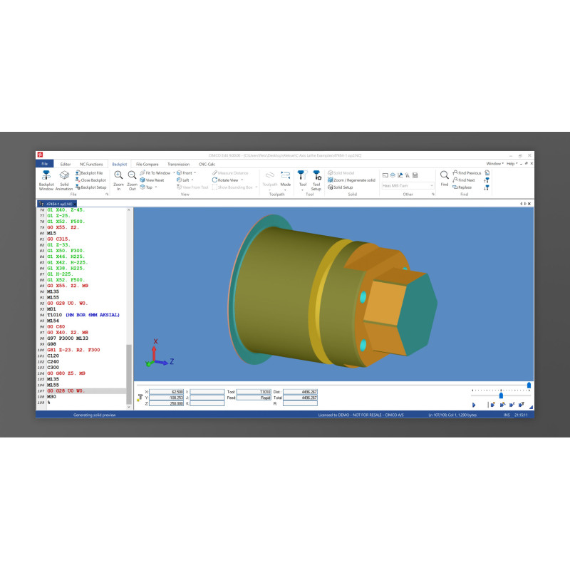 CIMCO Edit надає зручні інструменти для перегляду та внесення змін у код ЧПК. Зокрема, є функції підсвічування синтаксису, автоматичного пронумеровування рядків і швидкого пошуку потрібних фрагментів коду. Це дозволяє виявляти й виправляти помилки ще до запуску на верстаті, знижуючи ризик пошкодження деталей чи обладнання.Графічна симуляція
