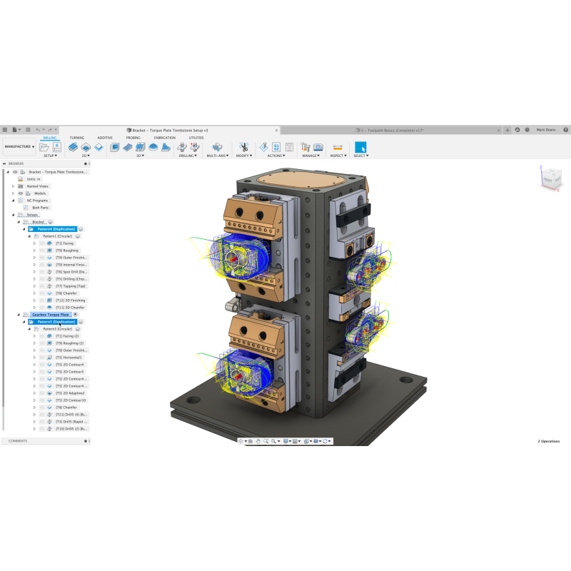 CAM (Комп'ютерне управління верстатами): Fusion 360 має потужні CAM функції, які дозволяють створювати маршрути обробки для CNC верстатів, автоматизуючи процеси фрезерування, токарної обробки та інших видів механічної обробки.
